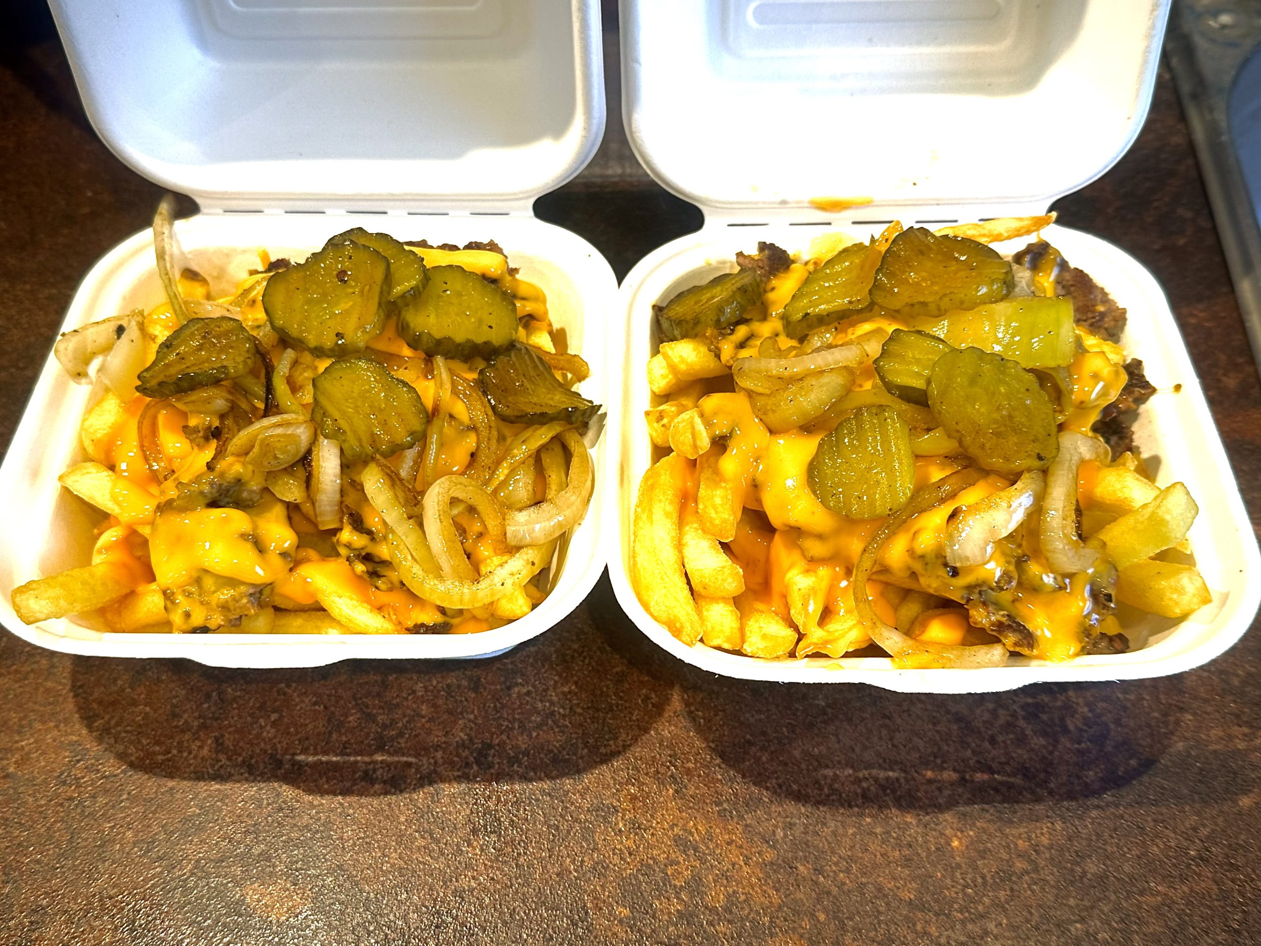 Smashed pattie(s), burger cheese, fried onion, pickles & nacho cheese sauce thrown at a bed of crispy fries